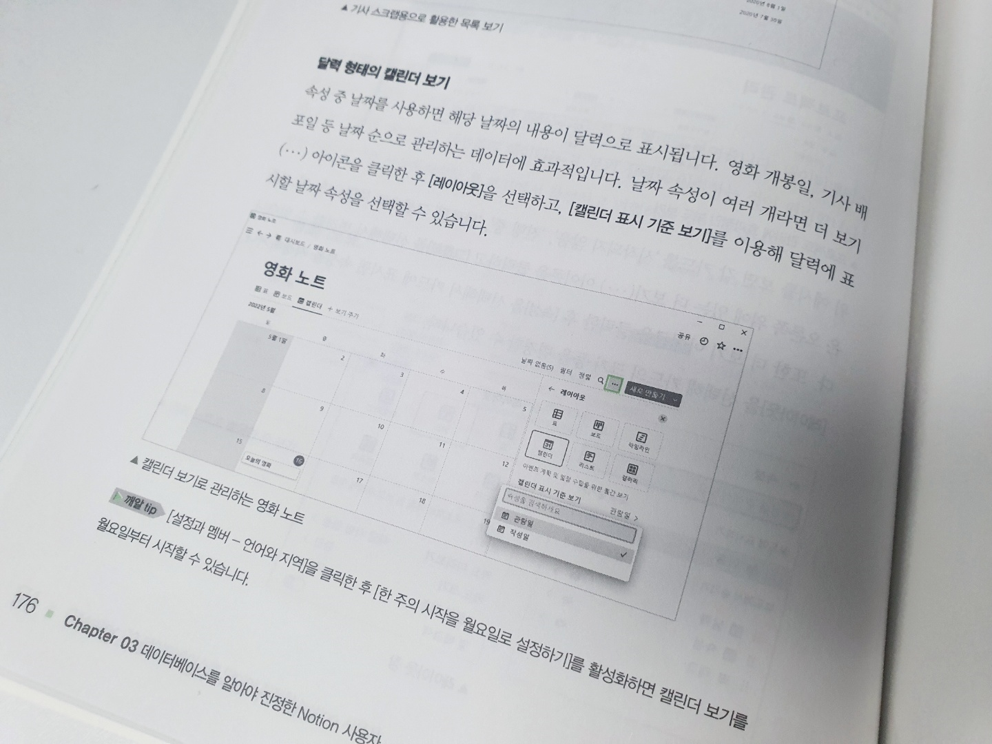 책 기준으로 176 쪽에서 간단하게 설명하고 있다. 독서 기록, 영화 노트, 가계부 등 비슷한 방법으로 날짜를 중심으로 작성한다면 캘린더 형태를 적극적으로 활용할 수 있다. 자세한 내용은 책을 참고하시라.
