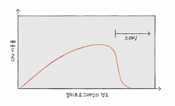 즉, 동시에 실행되는 프로세스의 수를 늘린다고 CPU 이용률이 올라가는 것은 아님
