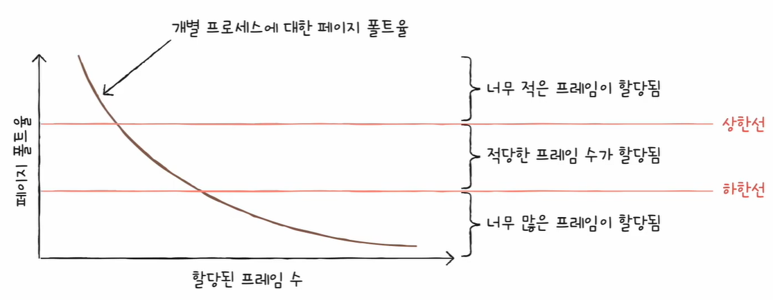 각 프로세스가 필요로 하는 최소한의 프레임 수를 파악하고 적절한 양을 할당해주어야 함