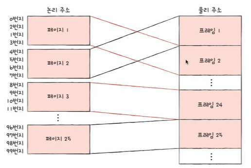CPU 는 논리 주소인 페이지만 순서대로 실행하면 물리 주소의 프레임을 순서대로 실행하는 것 같이 됨
