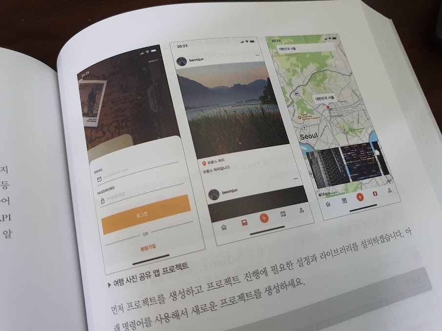 여행 사진 공유 앱에서는 앞의 두 프로젝트보다 이미지에 대한 내용이나 지도 그리고 로그인 등을 연계하기 위한 파이어베이스 사용까지 많은 것을 배우게 됩니다. 이쯤되면 왠만한 기본 내용은 거의 다 배운 것 같네요. 공부하면서 바로 나의 앱을 만들어보는 것도 좋습니다만 시간적 여유가 되면 빠르게 책을 본 후에 시작하는 게 좋을 것 같습니다. 실수와 삽질(?) 훨씬 줄일 수 있을 겁니다.
