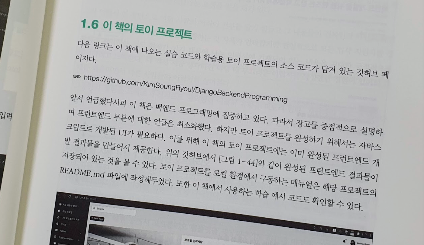 제목 『백엔드 개발을 위한 핸즈온 장고』 에서 보시다시피 이 책은 백엔드 프로그래밍에 집중해서 서술되어 있습니다. 책 전반에서 이용되는 토이 프로젝트는 프론트엔드도 포함하고 있는데, 이 부분은 이미 개발된 소스코드를 가져와서 사용할 수 있습니다. 책에 첨부된 깃허브 주소로 가시면 바로 사용할 수 있어요.