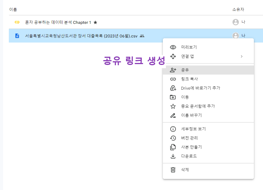 - 구글 드라이브에 있는 csv 파일의 다운로드 링크 만들기