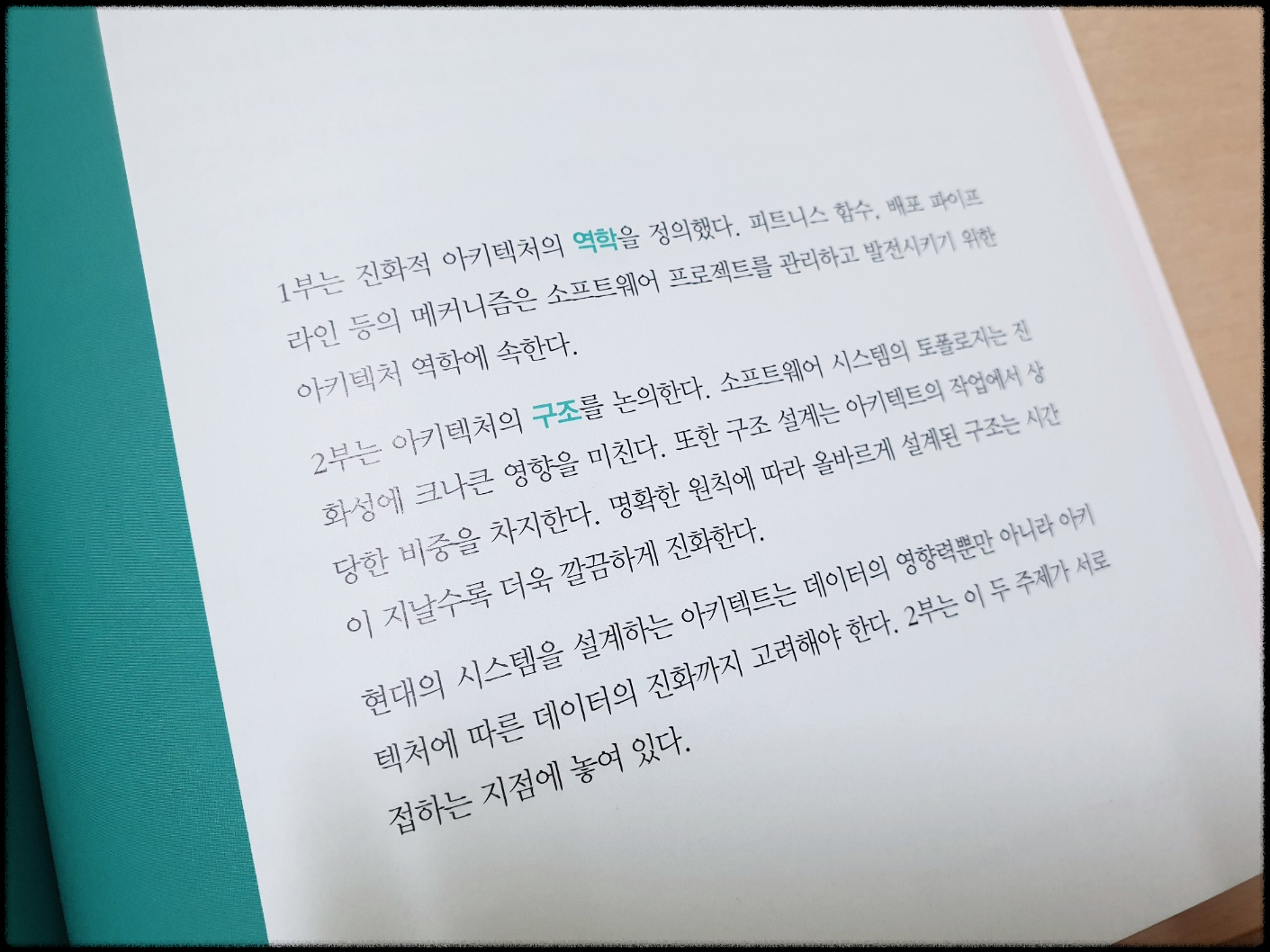 마지막 파트 3은 지금까지 배운 엔지니어링에 대한 사례들과 그에 대한 고찰을 해보는 시간을 갖는 내용입니다. 진화적 아키텍처를 구축할 때는 어떤 원리로, 어떤 역학으로, 어떤 가이드라인을 가지고 구축해야하는지를 자세하게 배울 수 있습니다.