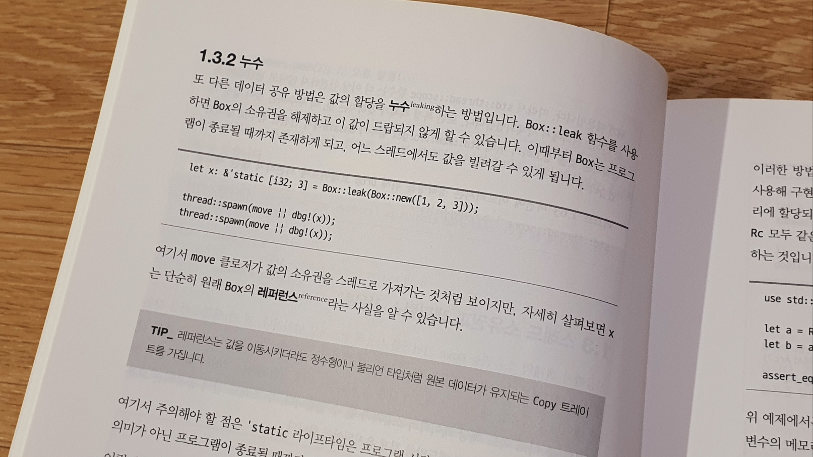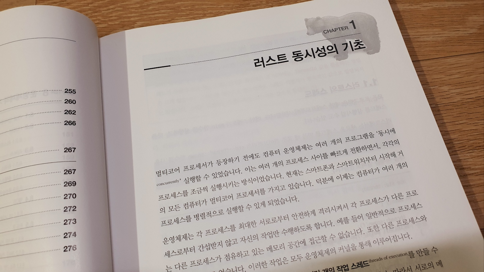 『러스트 동시성 프로그래밍』 은 부제 " Atomic과 Lock으로 안전하고 효율적인 동시성 코드 작성하기 " 에서도 알 수 있듯이 개념 설명의 비중은 많이 줄이고 구현에 초점을 맞춰서 코드를 많이 설명합니다. 개발자는 코드로 이야기하는 직업이니기도 하니 시작부터 코드를 사용하는 방식으로 배우는 것을 선호하는 사람들에게는 더 재미있을 수도 있겠습니다만 너무 개념을 모르는 채로 시작하면 조금 어려울 수도 있을 것 같긴 합니다.