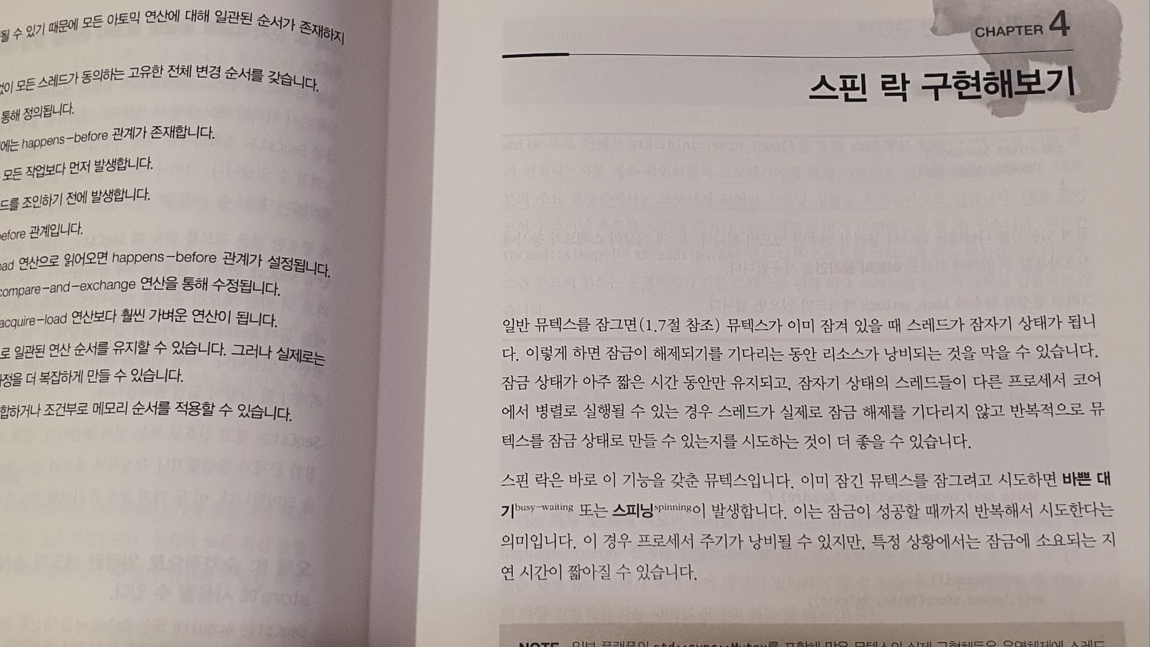 챕터 제목에서도 알 수 있듯이 동시성 프로그래밍에 필요한 다양한 기술들을 직접 구현하는데 집중하는 방식으로 목차가 구성되어 있습니다. 코드가 많다보니 직접 구현하면서 따라해도 좋지만 이런 류의 책은 손코딩으로 넘겨가면서 봐도 재밌게 읽을 수 있습니다. 그러기 위해선 당연히 언어에 익숙해야겠지만요.