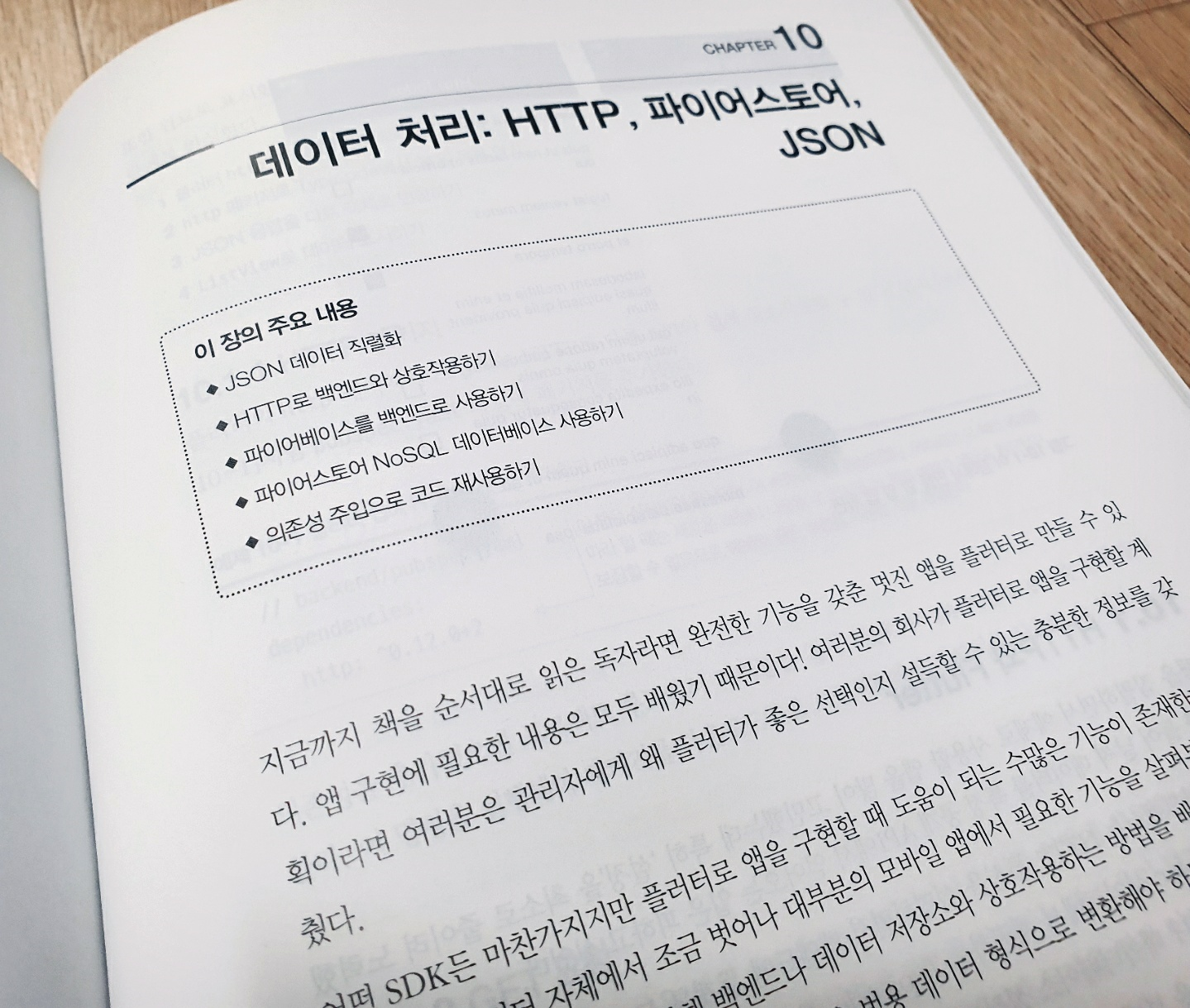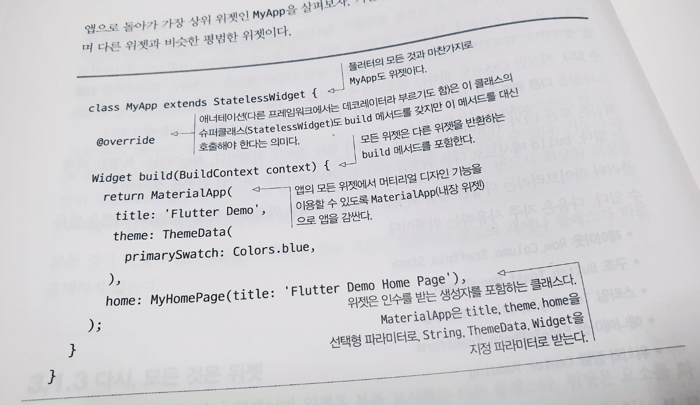 이 책은 다행히 처음 이 분야를 공부해보는 독자들도 볼 수 있도록 잘 구성되어 있다. 플러터란 무엇인지, 플러터에서 사용하는 Dart 에 대한 Hello World 부터 기본적인 문법설명부터 시작해서 UI를 시작으로 다양한 구조들을 개발해볼 수 있도록 구성되어 있다.