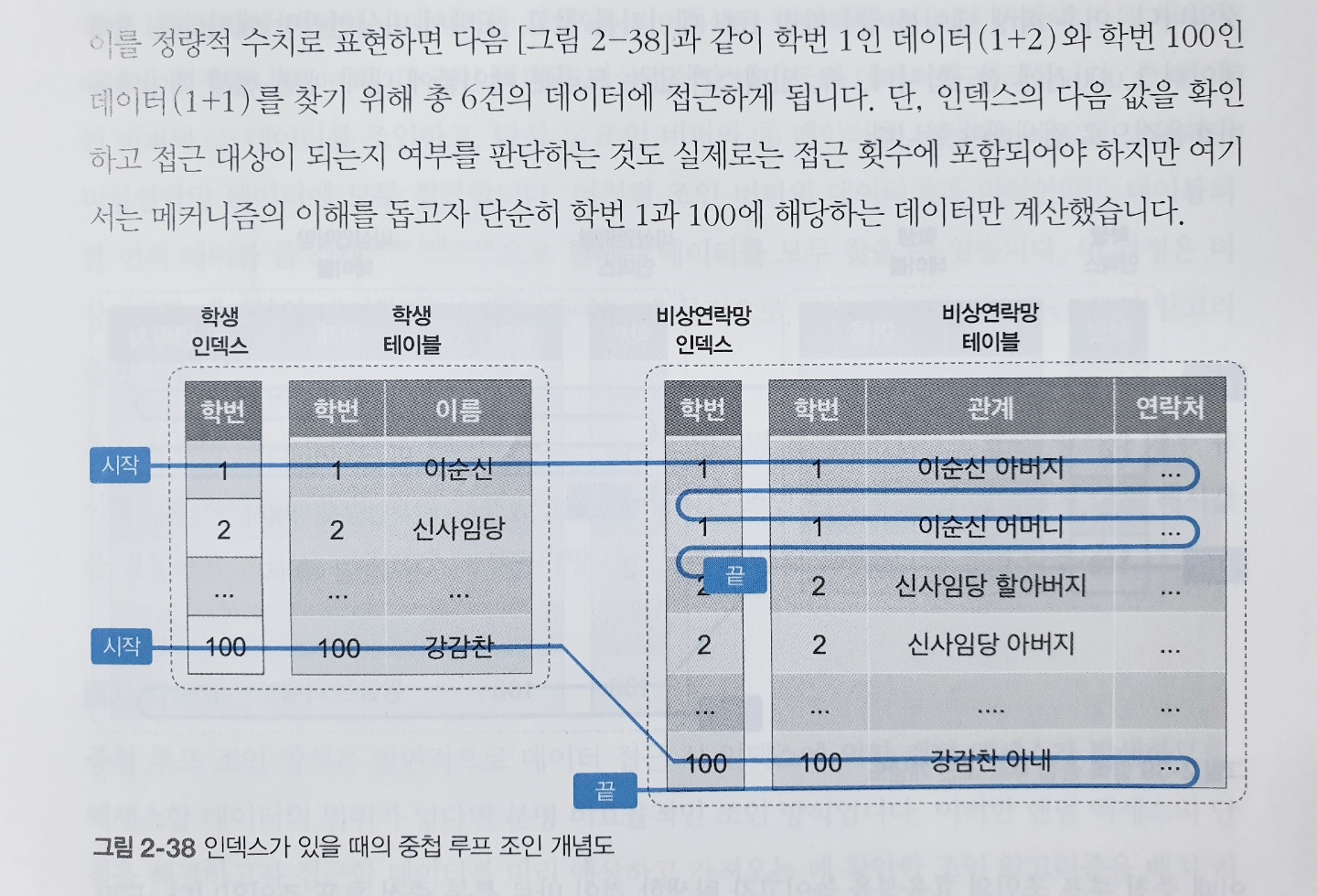 좋은 SQL을 단순히 작성하는데 목적이 있는 것이 아니라 어떤 SQL이 왜 안좋은지, 어떤 SQL은 왜 좋은지 그리고 어떤 메커니즘으로 동작하는지를 설명하고 있기 때문에 단순히 글이나 SQL 만으로는 이해가 어려운 부분이 있다. 그런 부분을 보완하기 위해 이 책은 정말 많은 그림을 포함하고 있다. 위 그림과 같이 특정 SQL이 실행되었을 때 쿼리가 어떤 방식으로 동작하는지 시각적으로 보여줌으로써 처음 배우는 사람들도 쉽게 이해할 수 있도록 한다.