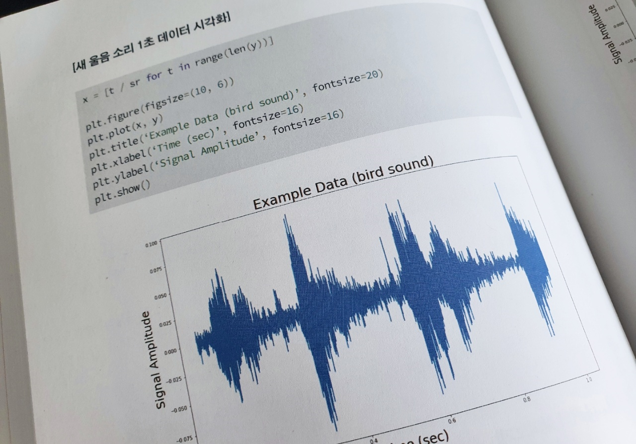 (나만 그런지는 모르겠지만) 하나같이 한번 쯤 해보고 싶었던 주제들이라 이렇게 떠먹여주는 책을 보면 정말 고맙고 반갑다. 아래 사진은 PART 7의 실시간 비명 감지 시스템에 나오는 음성 데이터와 관련된 부분인데, 한창 코를 많이 골던 시기에 내 코골이 소리를 녹음해서 데이터를 뽑아내고 분석해보려고 발악했던 시절이 생각나서 반가웠다. 분석하다가 때려치웠지만 이 파트를 읽어보면서 다시 한번 시도해보고 싶어 졌다.