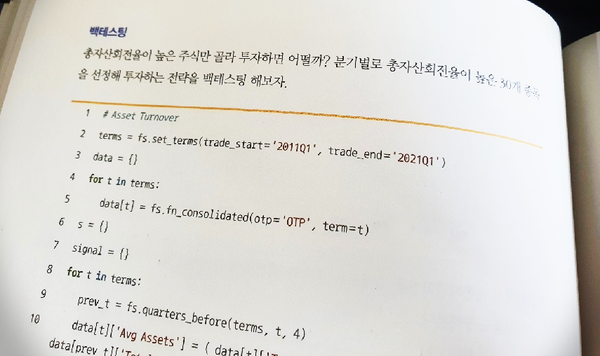 다행히 내가 완전히 금융에 대해 무뇌한은 아니라서인지 메인 목차에서 개발과 관련된 내용을 완전히 숨기고 실제 파이썬이라는 것 자체는 부록에서만 다루고 있는 분류가 정말 마음에 들었다. 책의 부제가 '주린이+코알못도 파이썬으로 쉽게 따라하는 퀀트투자 레시피' 인 것 답게 철저하게 파이썬을 도구로써 사용하고 있다. 분야를 가리지 않고 IT가 침범해 융합되고 있는 상황에서 굉장히 바람직한 방향이 아닐까. 모든 사람이 파이썬을 깊게 공부할 필요는 없으니까. 깊게 더 들어가는 것은 나 같은 개발자들이 하면 되니까...