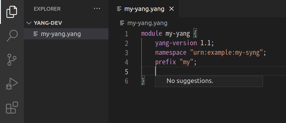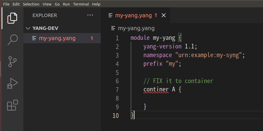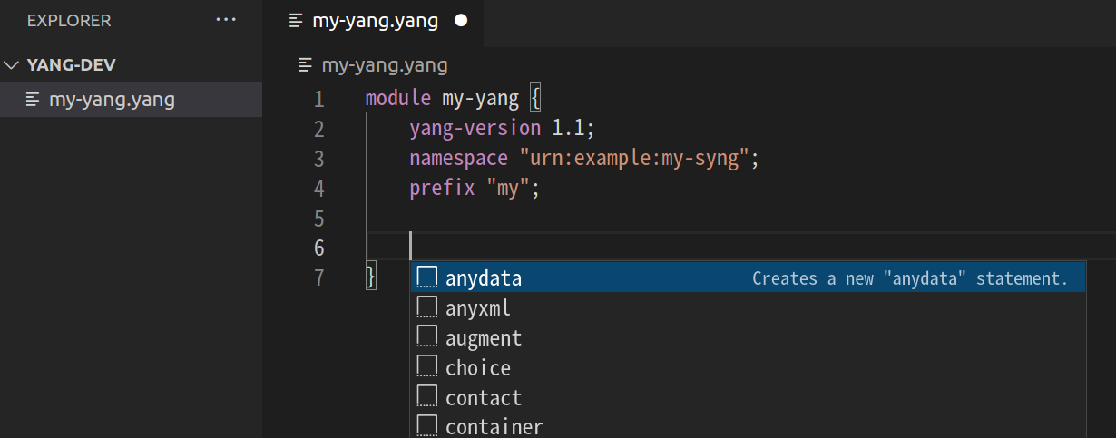 2. You can use the auto-completion function, grammear checking, and syntax function for YANG file.